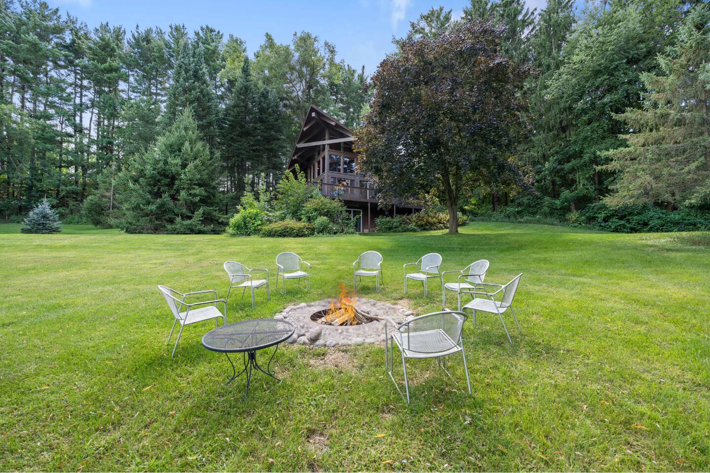 Take the fun route to our cabin by getting onto the FREE Ferry boat located in Merrimac! This Ferry runs 24/7! --- TV in the Living Room (basement and main floor) and Main Bedroom with an option for SmartTv features --- Reliable High-Speed Internet (200 MBPS) --- Lake view and surrounded by Bluffs --- Fire pit with Chairs --- Wrap Around Deck --- Peaceful Scenery --- Huge Yard for Games --- Charcoal Grill TIMES - Devil's Lake - 20 Minutes - Devil's Head Ski Resort- 11 Minutes - Cascade Ski Resort- 19 Minutes - Golf Courses - 12 Minutes - Boat Rentals - 12 Minutes - Portage - 20 Minutes - Baraboo - 25 Minutes - Wisconsin Dells - 35 Minutes GUEST ACCESS You will have full access to the entire cabin! AMENITIES We provide towels, hand soap, toilet paper, paper towels, shampoo/conditioner/bodywash, and trash can liners. Think of these amenities as a "starter kit", we HIGHLY recommend you bring additional items appropriate for your stay such as extra towels/blankets/cooking spray/ Salt/Pepper, etc. ENTRY There is a keypad located at the front door for a simple keyless entry. Entry code will be provided to you 72 hours before arrival. The code is changed after every guest. PARKING There are 3 parking spots on the property. There is also street parking for a short amount of time. The driveway is dirt/gravel and is steep. All Wheel Drive is recommended. THE DRIVE Imagine you are a racecar driver, you will experience the winding country roads with an occasional obstacle getting in your way such as deer, turkeys, chickens, and more. There will be limited service so printing off directions is wise. INTERNET/CABLE There is reliable high-speed internet throughout the cabin. All of the TVs are Smart TVs. We do not provide Netflix or Hulu, but you can certainly log in to your own account. GRILL We have a Charcoal grill on the property, but we DO NOT have charcoal. The guest will be responsible for providing this. We do however have the utensils such as tongs, flipper, and grill scraper. LAUNDRY Washer and Dryer are available for use. Please bring your own laundry detergent for your stay. BATHROOM There is a jack and Jill style bathroom on the main floor. There is another 1/2 bath in the lower level connected to the bedroom. Overall there is one shower in the cabin. BEDROOMS There are 3 bedrooms located on the property. The main floor bedroom holds a queen-size bed while the other bedroom is located on the second floor with another queen-size bed. The third bedroom is located in the basement with an egress window and its own bathroom. Each mattress has a different firmness to it. Overall, the cottage can accommodate 8 people comfortably with two people in each bed and two people on the couches (large L shape on main floor and one single couch in lower level). KITCHEN Fully equipped with refrigerator, stove, oven, microwave, toaster, Keurig, and all of the basic kitchen essentials; Pots/Pans/Plates/Cups/ Utensils. Keurig- Kpods are provided with creamers or sugar packets. We do not provide salt/pepper or any cooking oil. SECURITY Blink security cameras are located at the front of the cabin facing the driveway and one facing the front door. The third camera is facing the backyard. We will not be monitoring the camera on a day-to-day basis, only when needed. NO cameras inside the property. There is also a noise detector located outside in the backyard. FIREPIT: Please clean up after yourself, and make sure the fire is non roaring when you go inside for the night. * Upon Booking, a Rental Agreement Document will be sent. This Rental Agreement Document states our house rules for the property.